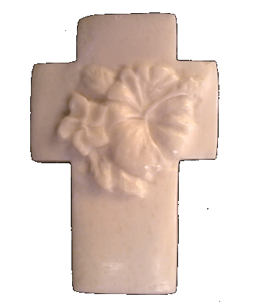 Plumeria, Hibiscus and some leaves, intricatly carved on a 4cm high cross